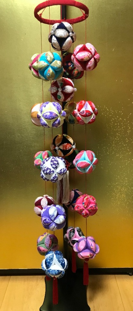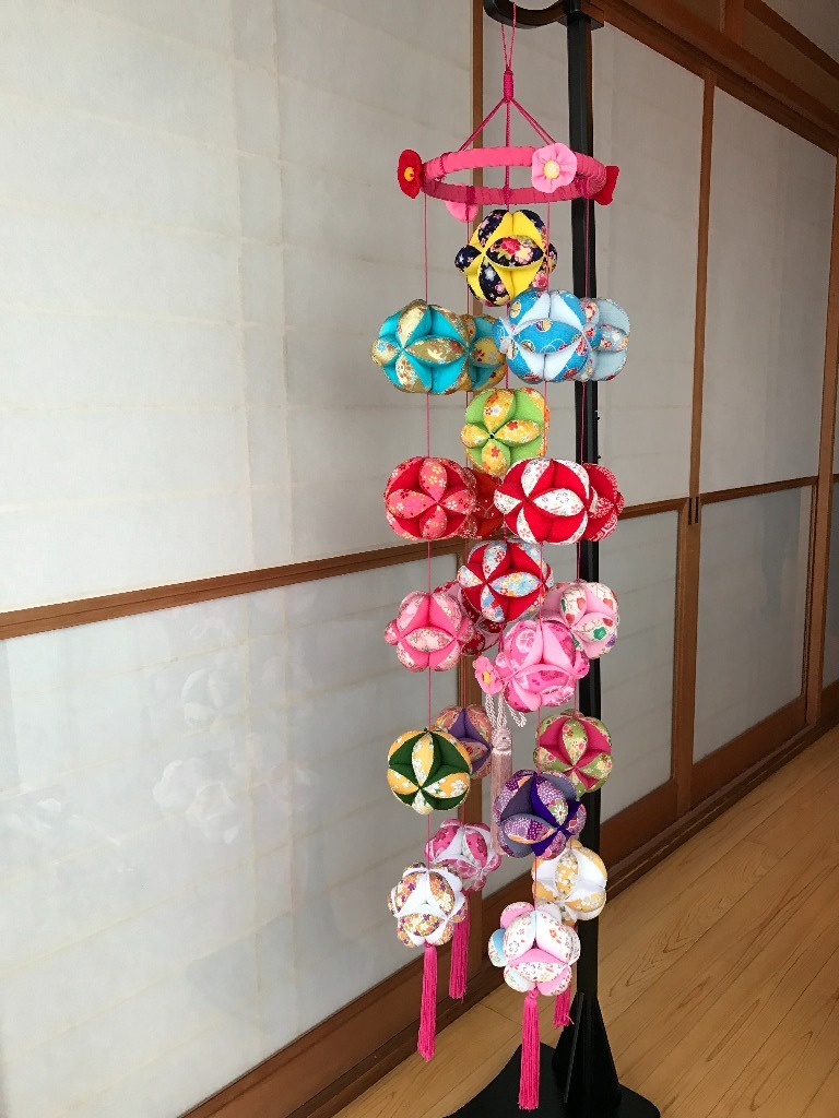 七宝まり25個をつるし飾りにしています。