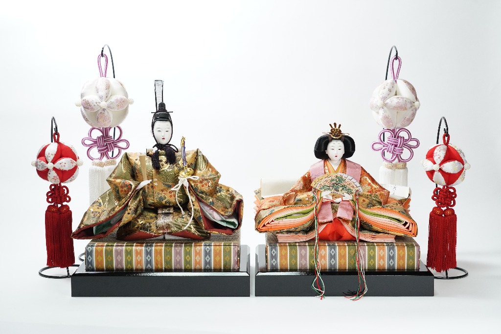 お内裏様とお雛様の伊勢七宝まり房飾り